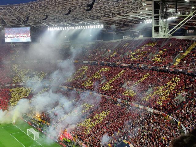 布达佩斯被橙红色覆盖。这既象征着欧联杯,也能够代表罗马队。在过往的执教经历中,穆里尼奥取得的成功,大多与蓝色有关:波尔图的蓝白、切尔西的深蓝、国际米兰的蓝黑。可实际上,“狂人”的性格在光谱中,或许与橙红更加接近。红色是普斯卡什竞技场座椅的颜色,是罗马远征军衣服的颜色,也是赛后穆里尼奥脸上的颜色。